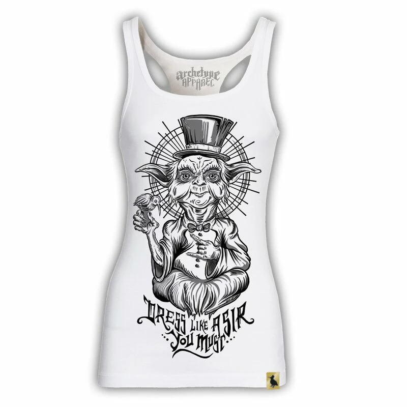 Stilvoll schicker Tank Top für Ladies von Archetype Apparels Dress Like A Sir Kollektion. Der Print zeigt eine Parodie von Yoda, der weise Jedi Masters aus Star Wars mit dem Schriftzug “Dress like a sir, you must”.