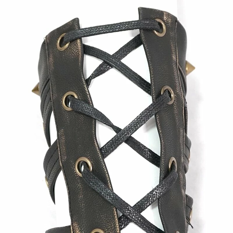 Kunstleder Armlinge von Devil Fashion. Die Gladiator Handschuhe sind mit Ösen, Spikes und Schädelnieten besetzt. An der Innenseite haben sie Schnürungen.