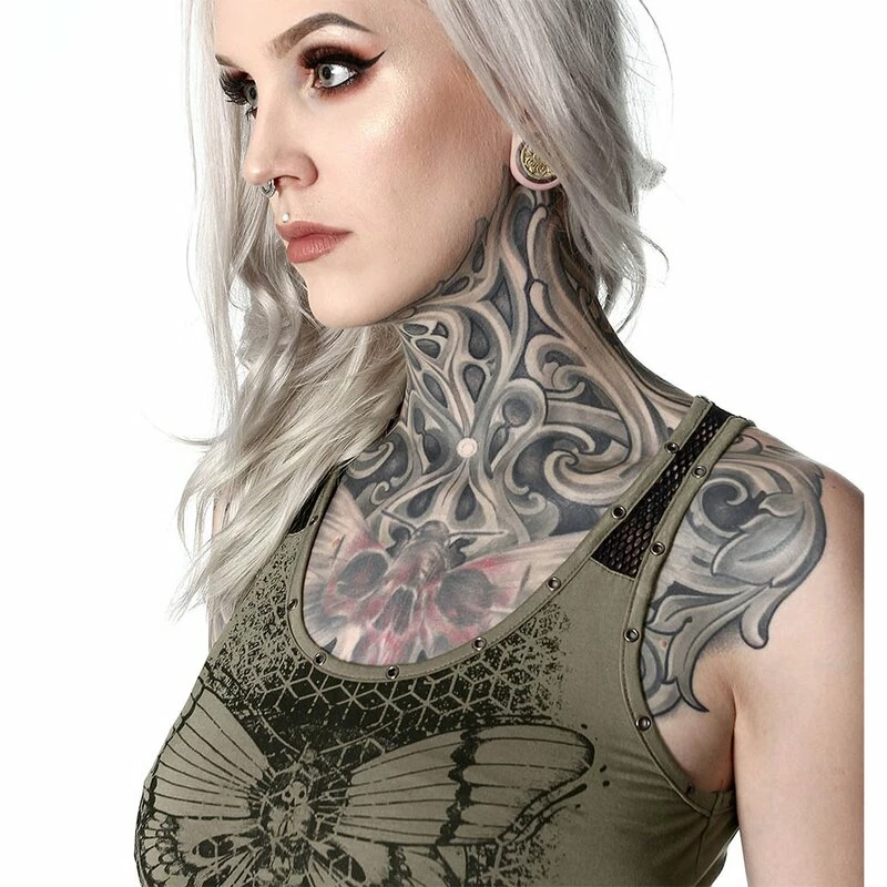 Manche Rätsel des Universums sind einfach nicht lösbar. Hyraws Ornament Print zeigt eine Motte und einen Schädel vor einem geometrischen Muster. Die Träger und Rückseite des Tops haben einen Netz-Einsatz.