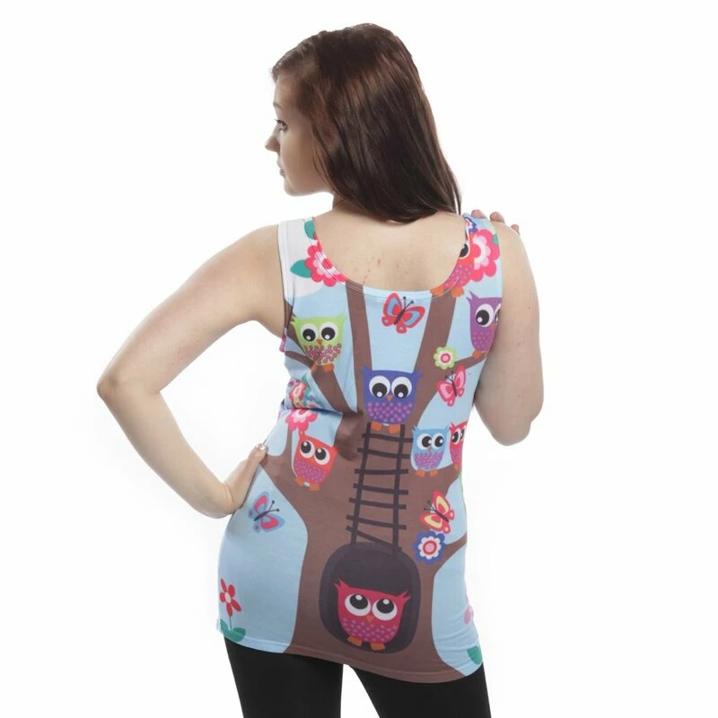 Ein mega süßer Tank Top der voll im Trend liegt, aber trotzdem zeitlos ist. Mit seinem süßen Eulenmuster ist dieses Oberteil ein richtiges gute Laune Teil. Auf Vorder- und Rückseite gibt es einen kunterbunten Aufdruck mit einer süßen Schar an farbenfrohen Eulen. Die glücklichen Eulen wohnen in ihrem süßen Baumhaus umgeben von Blümchen und Schmetterlingen.