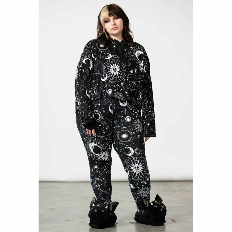 Killstar Galaxy Pullover lädt zum chillen ein. Er hat ein all-over galaktisches Muster mit Sternen, Sonnen, Monden, Konstellationen und kosmischen Laufbahnen.