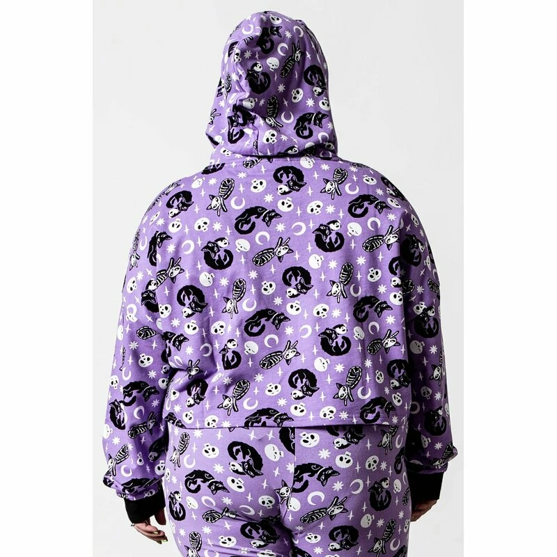 Features: Killstar Kapuzenpullover – Purr Off Cropped Hoodie Plum