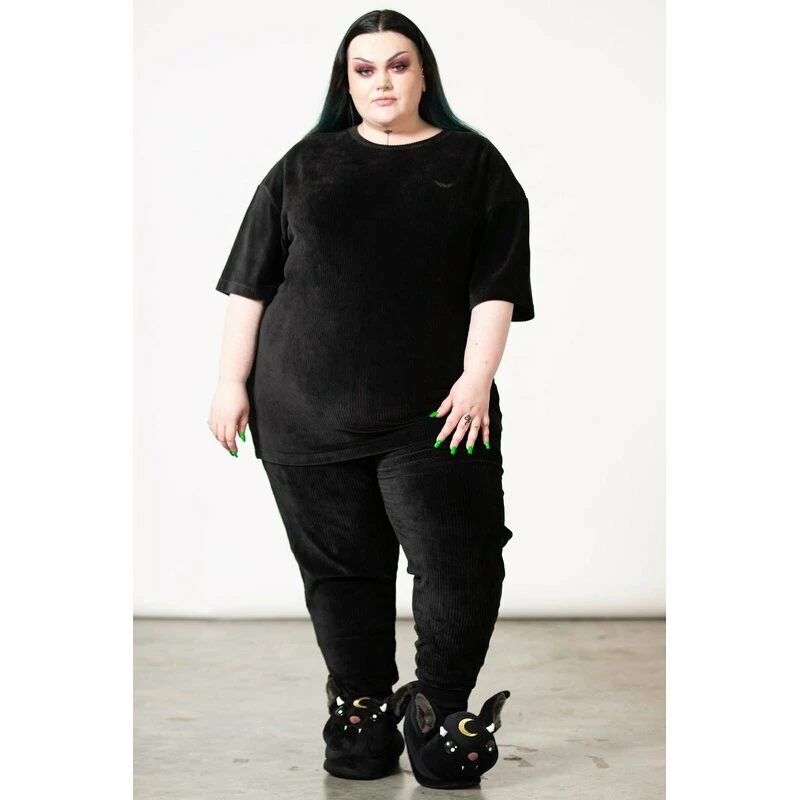 Killstars kuschelig weiches Devil’s Laze T-Shirt ist aus einem dicken, gerippten Velours. An der linken Brust befindet sich eine kleine metallene Fledermaus.
