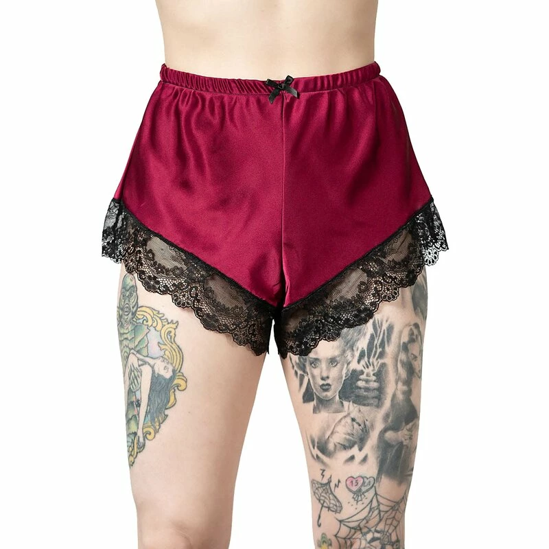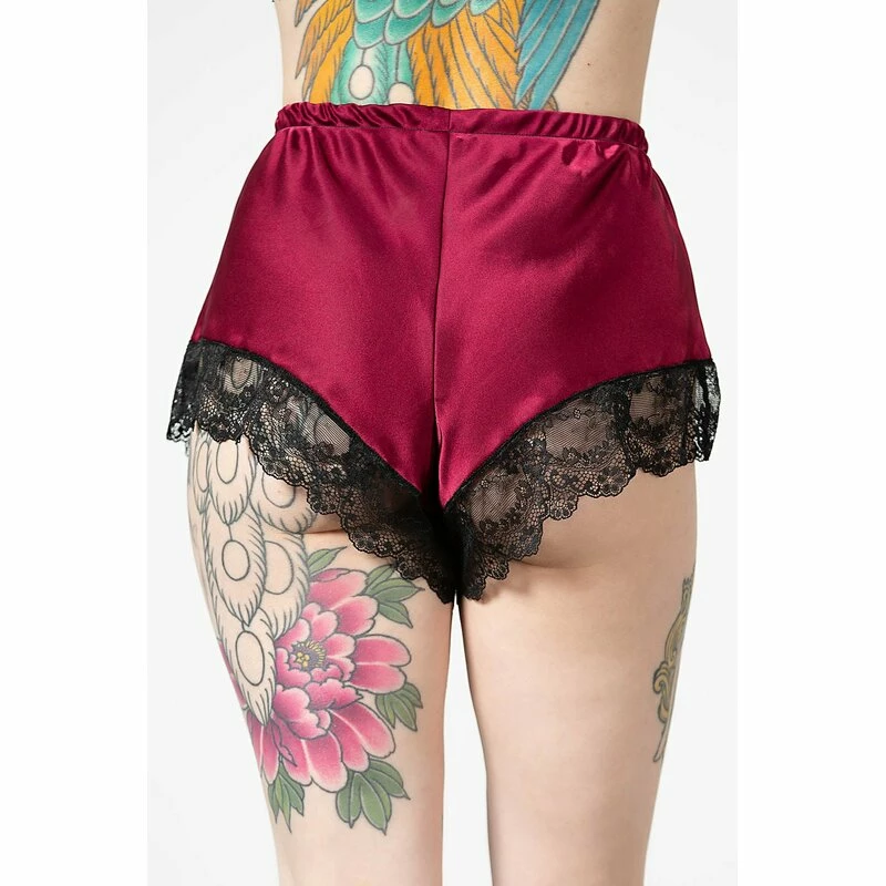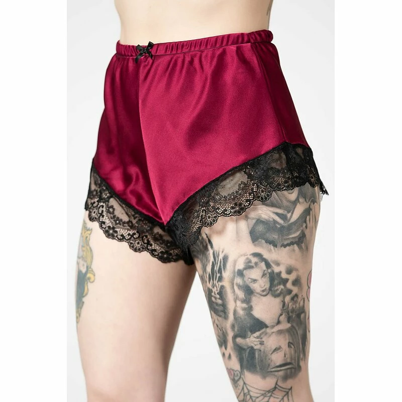 Ich sterbe vor Verlangen nach ihrem Gift. Killstars Severina Shorts sind aus superweichem Satin und haben, an den Beinlöchern, Bordüre aus feinster Spitze.