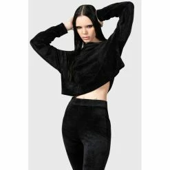 Endloser Tag, chillige Nacht, beste Freunde, in finsterer Tracht. Killstars Lounge Lizard Hose ist aus bequem weich und dehnbarem Velours mit einem elastischen Bund.