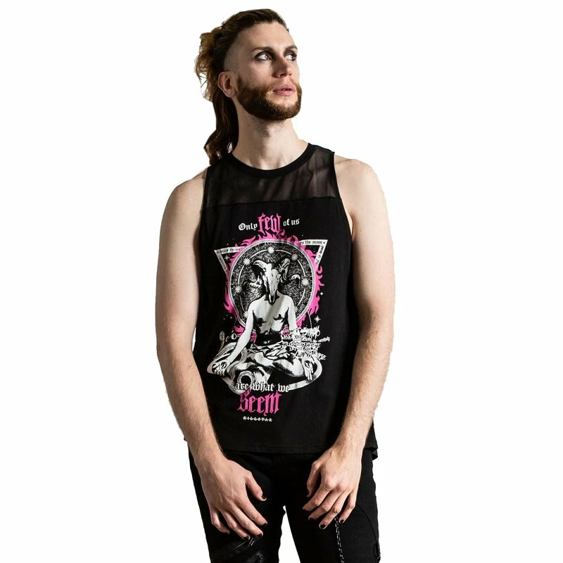 Nicht alles ist wie es scheint! Killstars Meditate Print zeigt einen meditierenden Baphomet mit “Only few of us are what we seem” Schriftzug.
