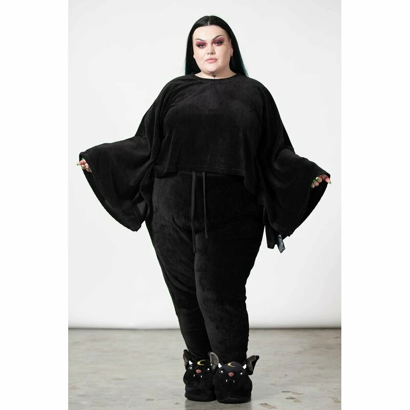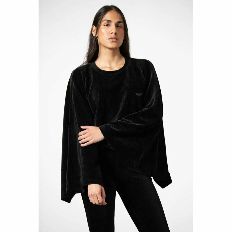 Killstars Ghastly Dreams Oberteil ist aus einem superweichem gerippten Velourstextil. Es hat einen lockeren Schnitt und super weite Fledermausärmel.