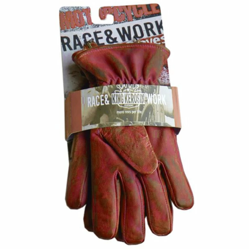 Features: King Kerosin Damen Leder Biker Handschuhe – Work Glove Faded Red
