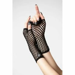 Punkige Gothic Handschuhe von Pamela Mann. DieSlashed Sleeves sind an der Außenseite komplett zerschlitzt und haben Löcher für Daumen und kleiner finger.