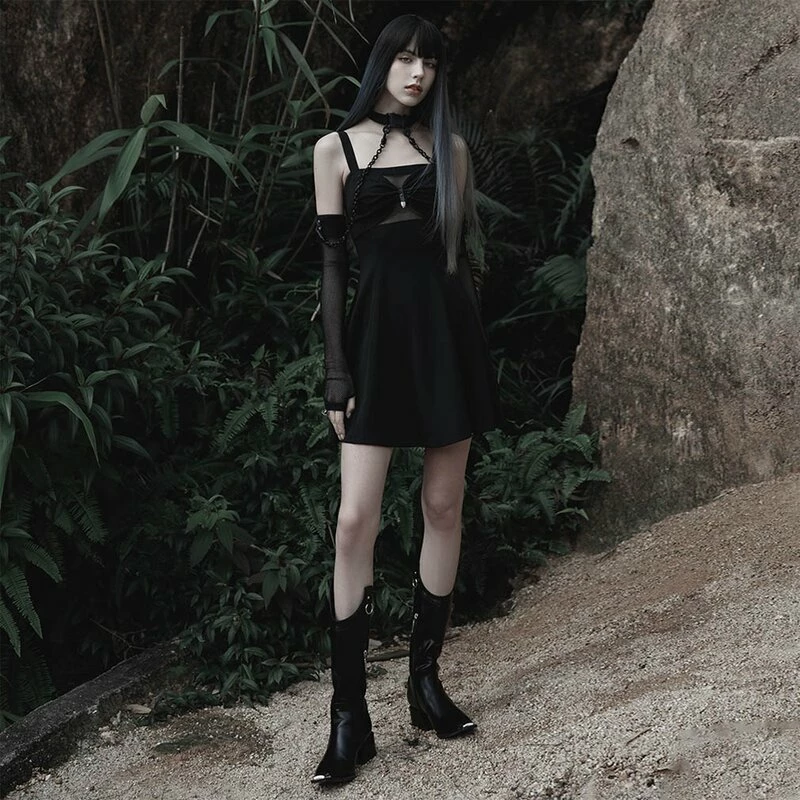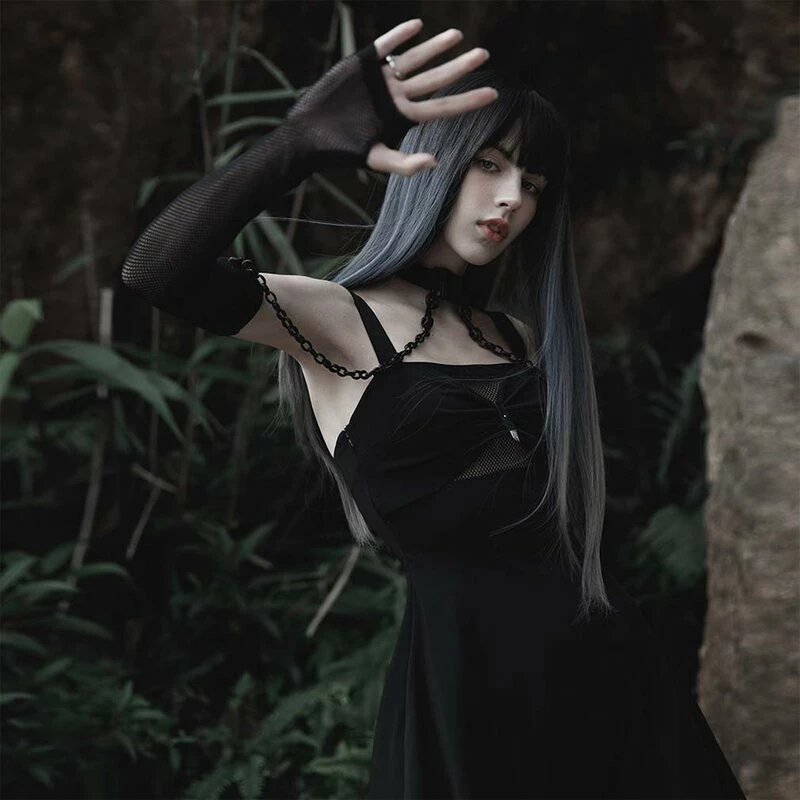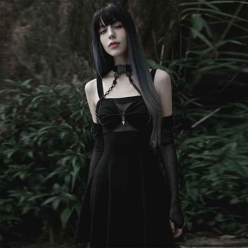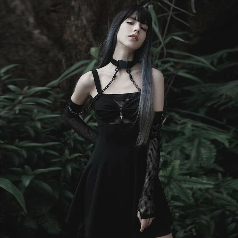 Goth Sleeves mit Grunge Touch von Punk Rave. Die Nexus Armlinge sind aus feine Mesh Netz Material. Dazu gibt es ein Choker Halsband welches, durch zwei abnehmbaren Ketten, mit den Armlingen verbunden werden kann.